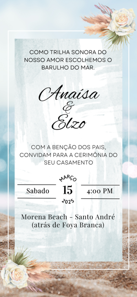 Além disso, em vez de presentes tradicionais, se preferirem, criamos um fundo para a lua de mel. Sua generosidade nos ajudará a criar memórias inesquecíveis e a iniciar nossa vida juntos em uma incrível aventura. O valor pode ser entregue na recepção do casamento, ou por transferência bancária.